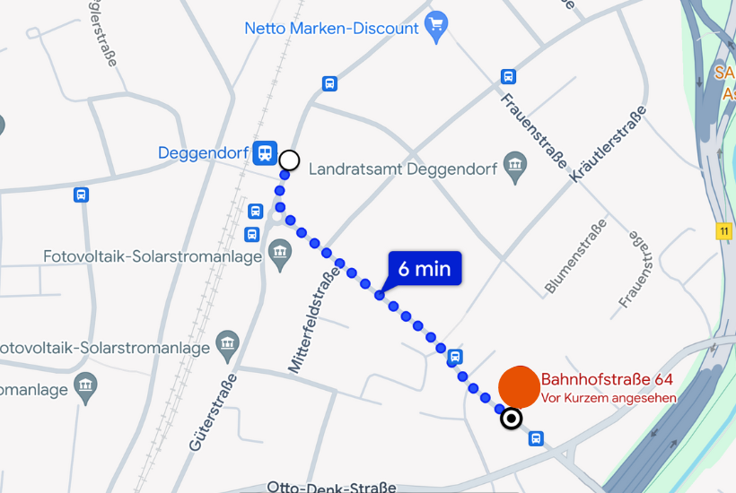 In nur 300 m Entfernung befindet sich der Hauptbahnhof in Deggendorf.
